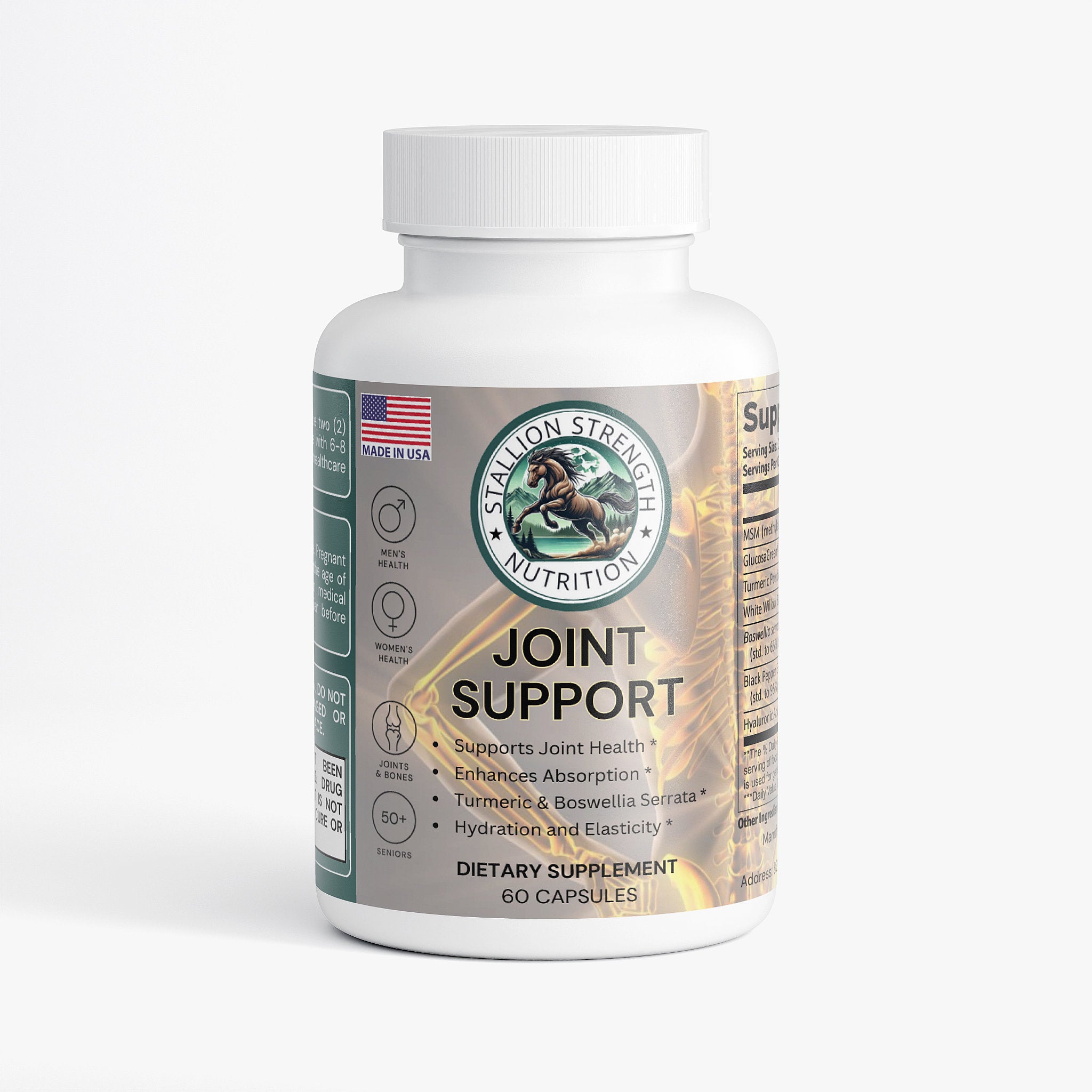 This joint support supplement provides essential nutrients and compounds that support joint health. It features a comprehensive blend of ingredients such as MSM, GlucosaGreen® vegetal glucosamine HCl, Turmeric Powder, and Boswellia serrata Extract, designed to promote joint flexibility, reduce discomfort, and support overall joint function. Ideal for daily consumption, this supplement aims to enhance your joint health through its potent, natural ingredients, without relying on artificial additives.*