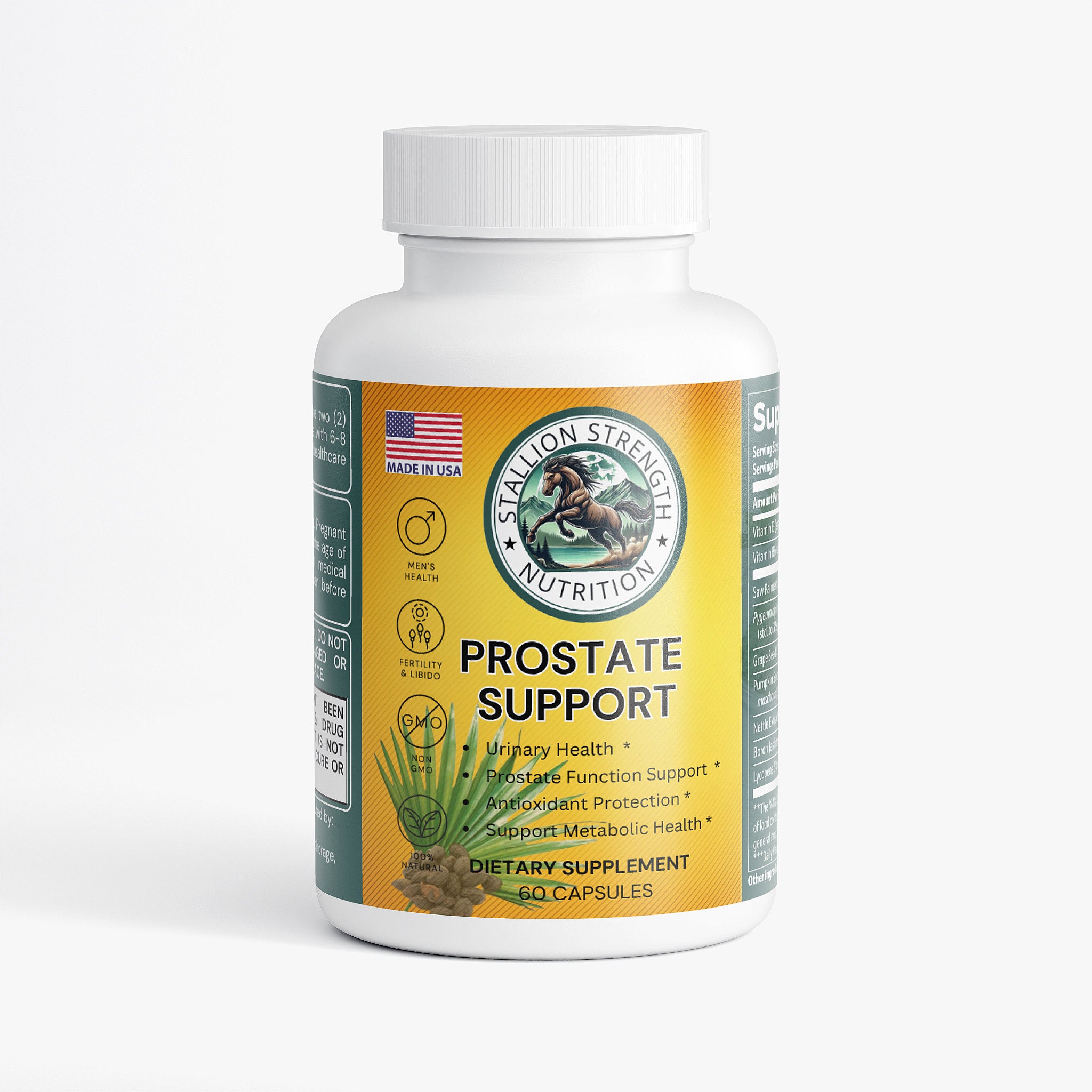This Prostate Support Supplement, blended with select natural ingredients is designed to support prostate wellness. This supplement leverages the potent effects of Vitamin E, Vitamin B6, Saw Palmetto, and other key extracts to provide targeted support. Designed for daily use, it aims to improve overall prostate health and urinary function, ensuring a holistic approach to men's wellness without relying on artificial substances.*